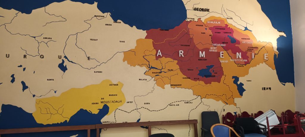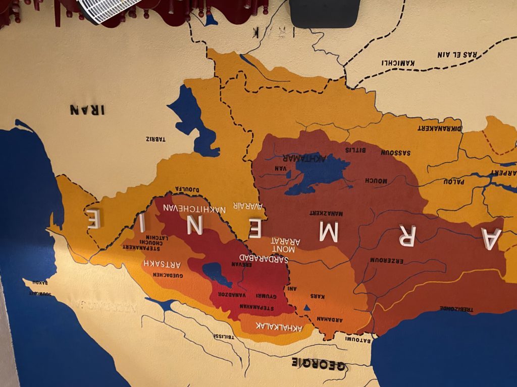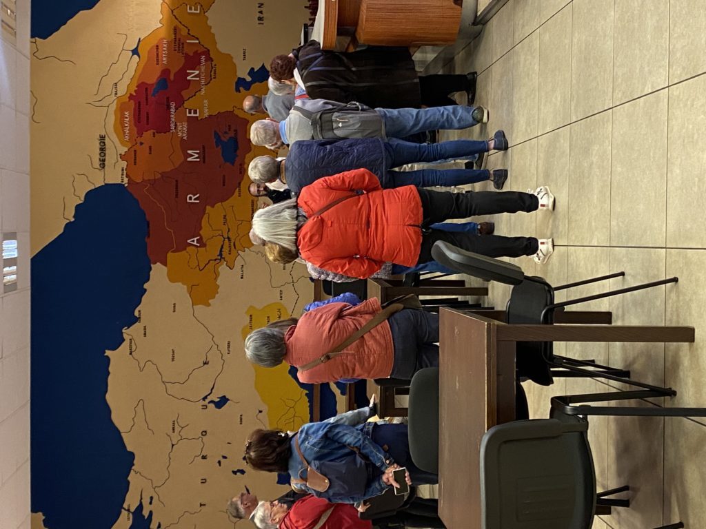 Visite guidée historique du quartier arménien de Décines et du CNMA. Le monument conçu par Robert Darnas : 1er monument européen à la mémoire du génocide. Poursuite de la visite par l'église et son jardin. Déjeuner arménien.